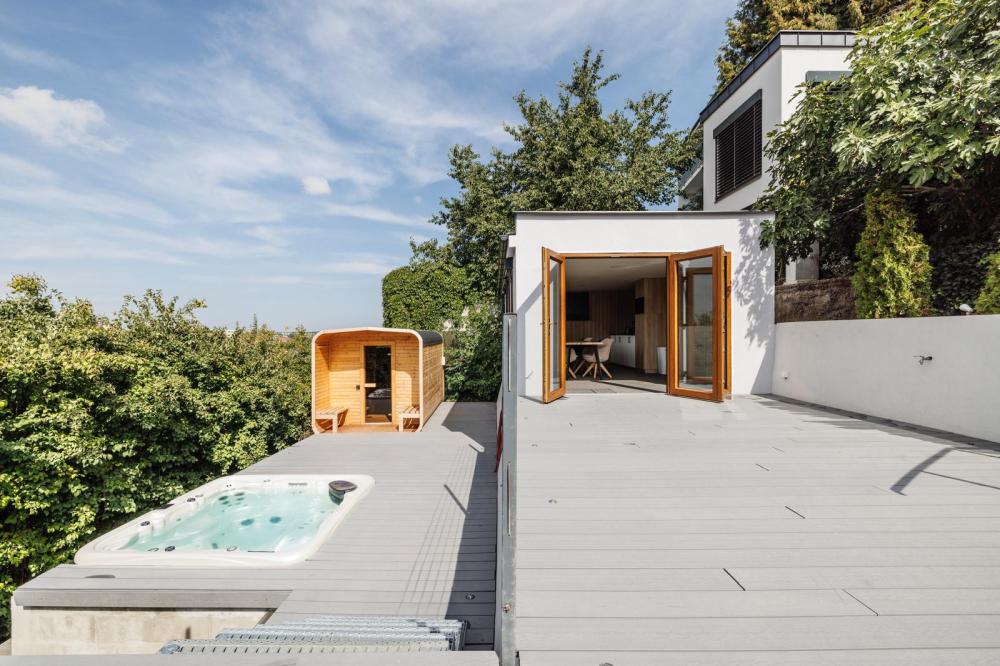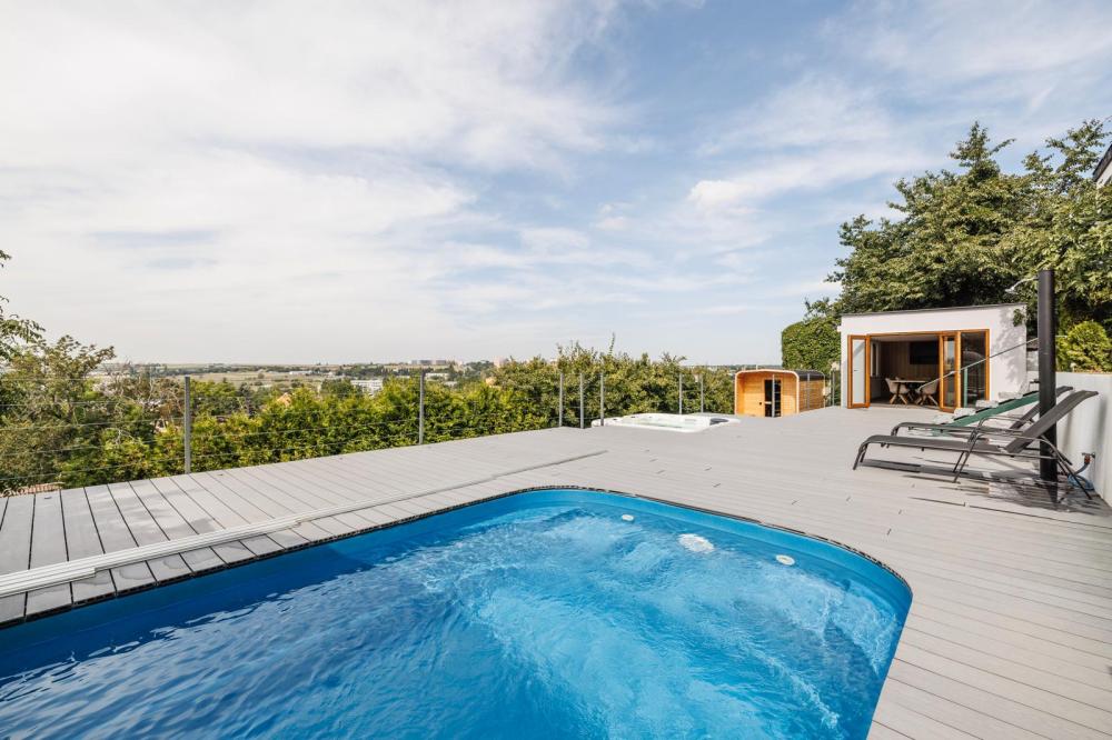 Airport Luxury Apartment & Spa Prague poskytuje zahradu, sdílený lounge, terasu, bar, bazén s teplou mořskou vodou, 2 vířivky, saunu pro 12 osob, party house a výhled na město.