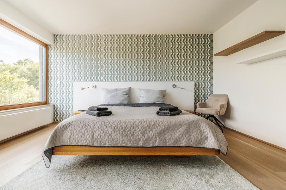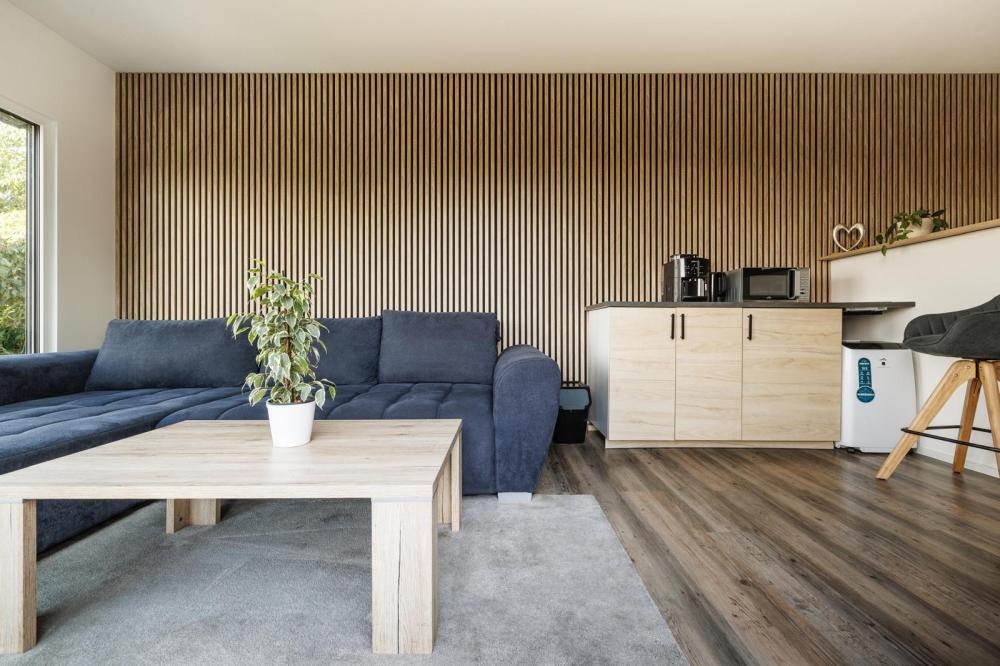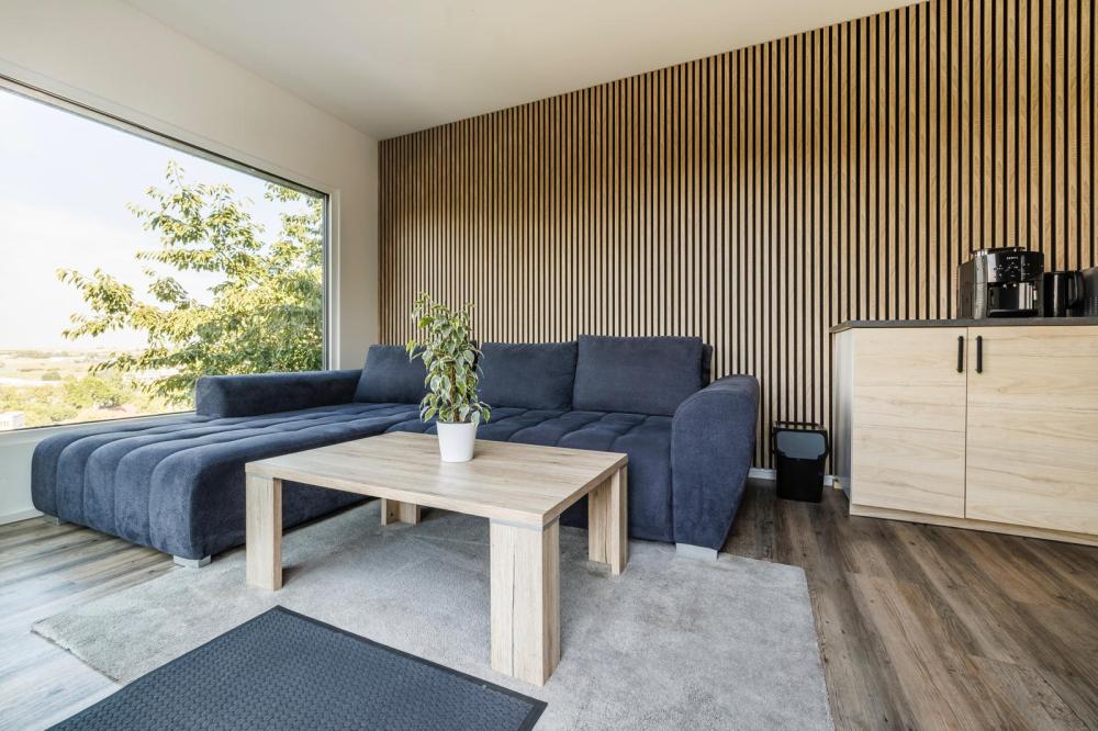 K vybavení patří také lednice, mikrovlnná trouba, varná deska, kávovar a varná konvice.
