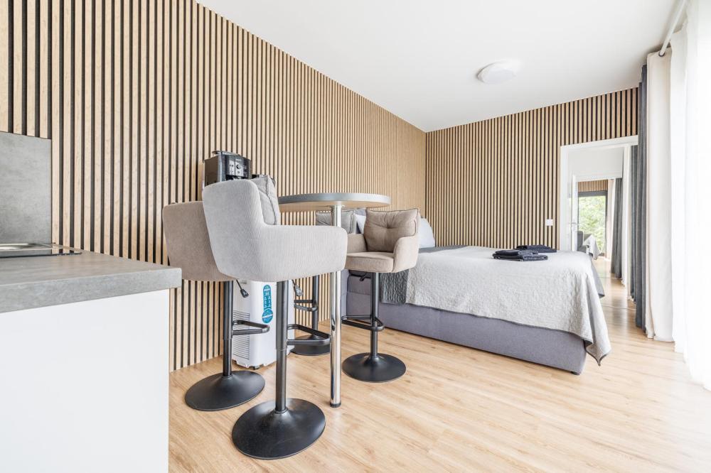 Ubytovací jednotky se mohou pochlubit balkonem nebo patiem s výhledem na bazén a do zahrady a mají venkovní posezení s možností grilování, satelitní TV s plochou obrazovkou a kuchyňský kout.